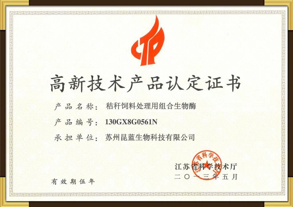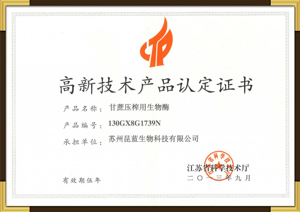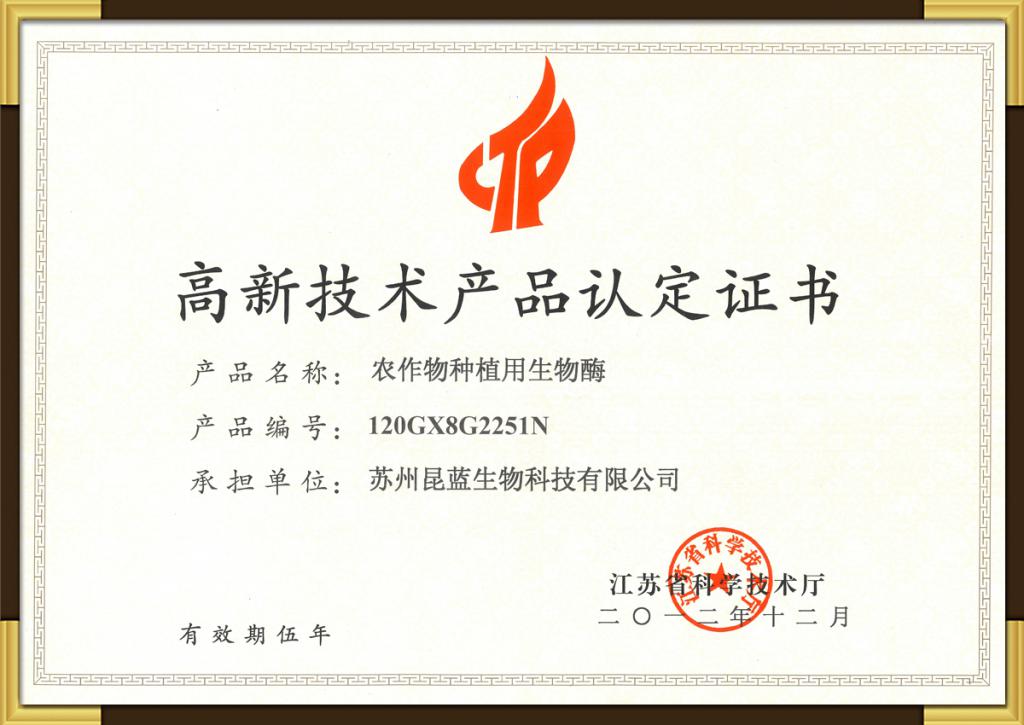 高新技术产品认定证书