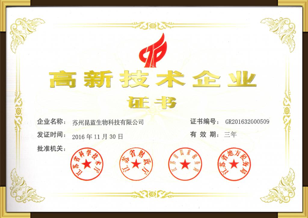 高新企业证书