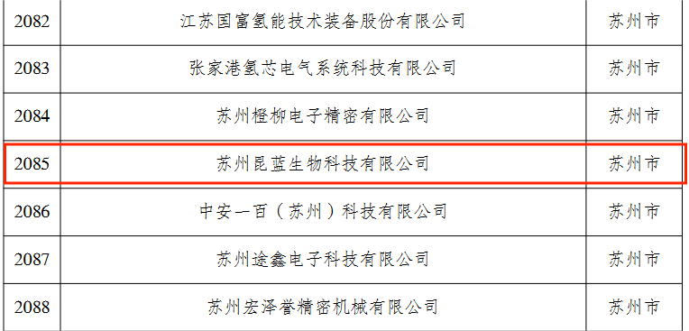 苏州昆蓝生物科技有限公司凭借在应用生物酶制剂领域突出的技术创新成绩和研发实力荣列其中,荣获“江苏省民营科技企业”称号!