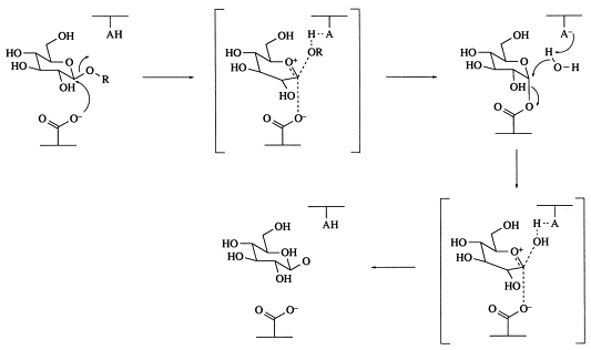 葡萄糖苷酶属于水解酶,能够高效水解非还原还原性末端的β-D-葡萄糖苷键,同时释放出β-D-葡萄糖和相应的配基。另外在高浓度配基或葡萄糖及特定的反应条件下,该酶具有转苷活性,可以将配基或葡萄糖体以β-1,6糖苷键形式转移到其他糖底物上。